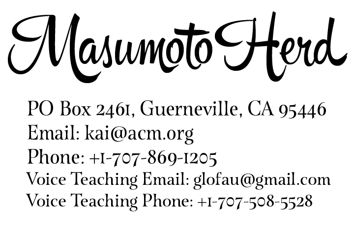 ADDITIONAL INFORMATIONMASUMOTO HERD is a marital partnership registered in Sonoma County, CA. Masumoto Herd Website: http://www.masumotoherd.com/ Masumoto Herd YouTube Channel: http://www.youtube.com/glofau/ Our main workshop is located in Rohnert Park, California. Tours by appointment only. Please contact us at the phone number above to schedule a time! Last Updated: February 5, 2020 |